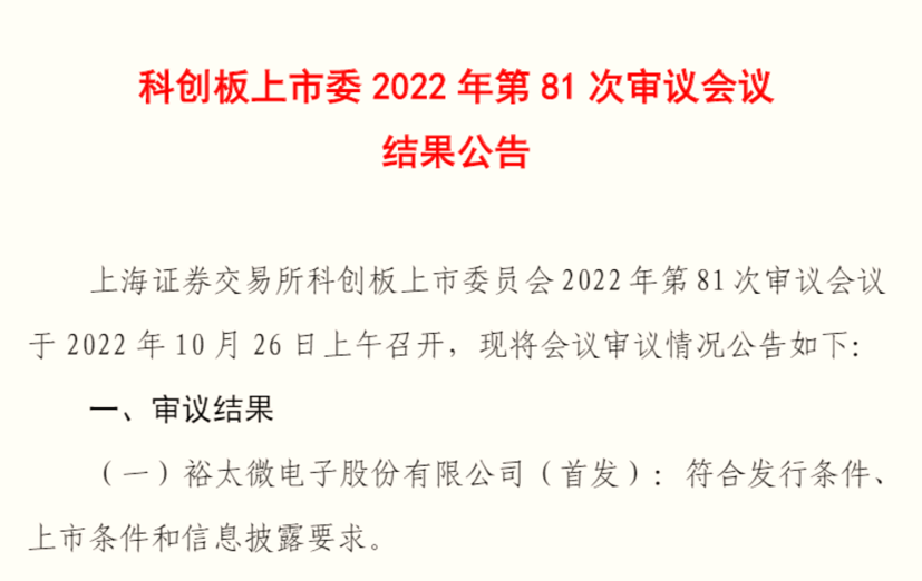 10月26日,據上海證券交易所科創板上市委員會2022年第81次審議會議公告,匯川技術的股權投資企業裕太微電子股份有限公司(簡稱“裕太微電子”)IPO順利過會。