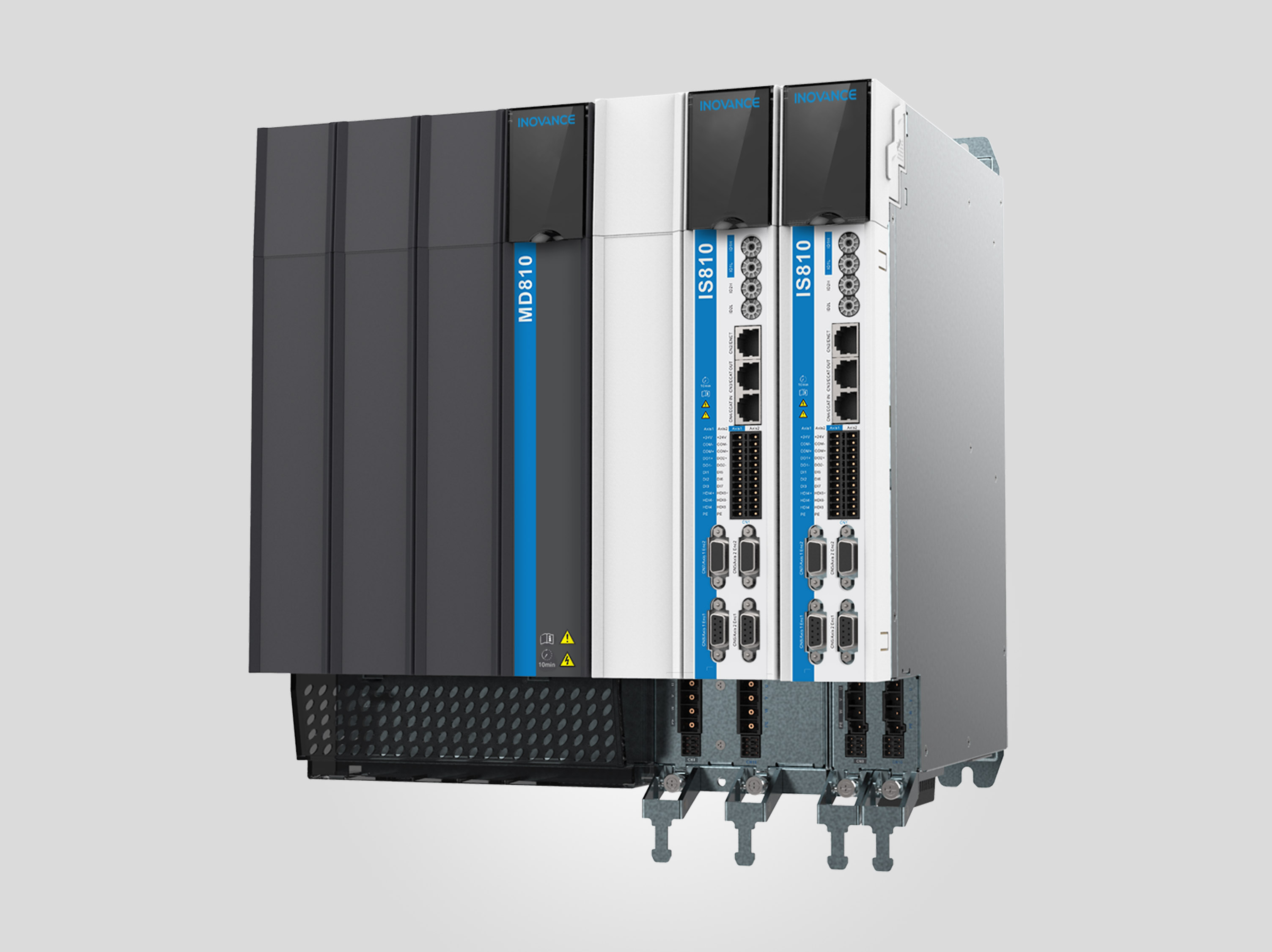 IS810N-INT系列伺服驅(qū)動器產(chǎn)品是匯川技術(shù)研制的高性能中大功率交流伺服驅(qū)動器。該系列產(chǎn)品功率范圍為100W—75KW,采用以太網(wǎng)通訊接口,支持EtherCAT通信協(xié)議,配合上位機(jī)實(shí)現(xiàn)多臺伺服驅(qū)動器聯(lián)網(wǎng)運(yùn)行。810N-INT系列產(chǎn)品提供了剛性表設(shè)置、慣量辨識、機(jī)械特性分析及振動抑制功能,使伺服驅(qū)動器簡單易用。配合包括小慣量、中慣量的MS1系列、ISMG系列高響應(yīng)伺服電機(jī)(電機(jī)搭配20位增量式或23位多圈絕對值編碼器),運(yùn)行安靜平穩(wěn),定位控制更加精準(zhǔn)。適用于凹印機(jī)、柔印機(jī)、瓦楞紙印刷設(shè)備、半導(dǎo)體制造設(shè)備、貼片機(jī)、印刷電路板打孔機(jī)、搬運(yùn)機(jī)械、食品加工機(jī)械、機(jī)